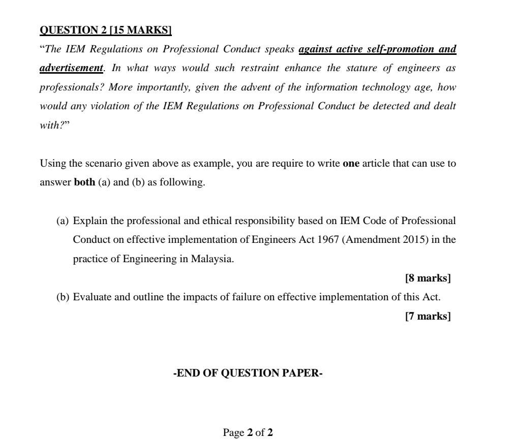 Prhaa2j6yfpoom from www.coursehero.com Board of engineer malaysia (bem) & iem documentations 2. Codes of ethics are systematic statements of principles or rules of appropriate professional conduct, usually established by professional societies. Sound judgment and integrity of character are indispensable in applying ethical principles to particular situations and individuals. Individual codes of ethics 12. If proof is already sufficiently clear with less. The code has been updated following a consultation on possible revisions and to adopt the drafting format used by the international ethics standards board for accountants (iesba). Are the present safety practices of your industry adequate? Candidate would be expected to answer.