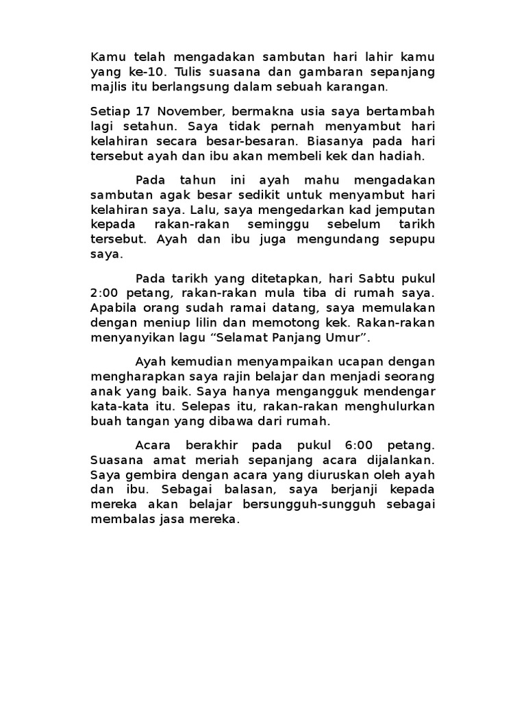 Kek Hari Jadi 2008 Kek Besar Sempena Sambutan Hari Jadi 20 Flickr from live.staticflickr.com → kakwan fb ni lah yang paling lama dan sentiasa aktif membekalkan sumber resipi dan kandungan citarasawan, kakwan aktif di fb sebab boleh tengok orang lain masak dan perkembangan cucu kakwan si adam follow di insta: Tulis lima ayat berdasarkan gambar tersebut. 18 april 1978 tidaklah terasa jauh sangat, sehinggalah saya selak balik kalendar dan lihat betapa jauhnya masa sudah berlalu. Meriahnya sambutan hari jadi yang dihadiri oleh beberapa kenalan artisnya dan kenalannya. Macam tahun tahun lepas, ana akan order dengan pejol dari gerobok kek. Bertemakan konsep puteri kayangan, ternyata majlis sambutan hari jadi tersebut tersebut kelihatan sangat meriah dan comel. Murid yang kurang mampu pun terasa mereka diraikan pada hari lahir kawan mereka yang agak berada. Gambar ini agak sesak dengan tulisan dan lukisan jadi ianya mungkin hanya sesuai untuk pelajar tahap 2 sahaja.