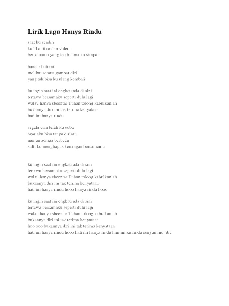 Lirik Lagu Hanya Rindu - Ok google, sekedar pemberitahuan, kami tidak menyediakan download mp3 dari lagu di atas.. Unduh joox gratis, musik gratis, radio gratis, tangga lagu teratas, playlist, rilisan terbaru dan dengarkan offline. Jun 29, 2021 · berikut ini chord lagu mencari cinta yang dinyanyikan oleh grup band noah feat bunga citra lestari, lengkap dengan lirik dan video klipnya. Ok google, sekedar pemberitahuan, kami tidak menyediakan download mp3 dari lagu di atas. Mendengarkan lagu sheila on 7 seperti waktu itu saat kau di sisiku dan tunggulah aku di sana memecahkan celengan rinduku berboncengan denganmu mengelilingi kota menikmati surya perlahan menghilang hingga kejamnya waktu menarik paksa kau dari pelukku lalu kita kembali menabung rasa rindu saling mengirim doa, sampai nanti, sayangku jangan matikan. Download joox app & listen free mp3 lagu online.